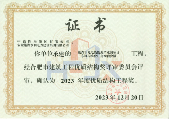 “廬州杯”榮譽證書