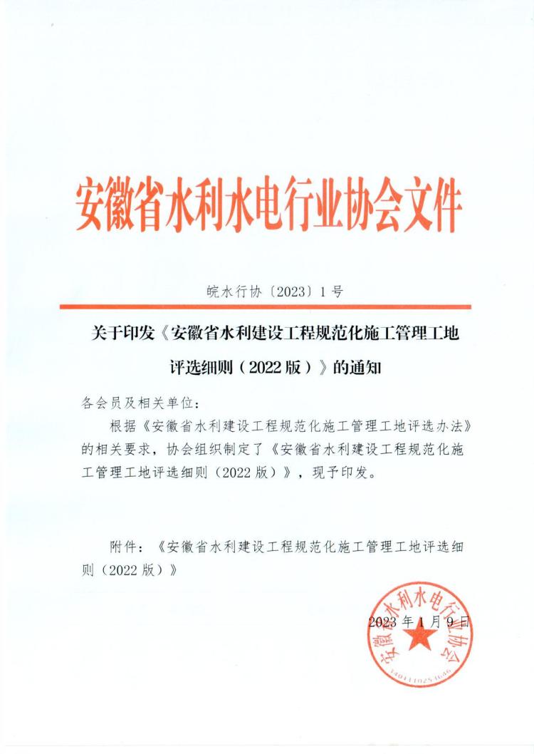 《安徽省水利建設(shè)工程規(guī)范化施工管理工地評選細則(2022版)》